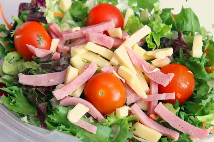 Torta Cubana – The King Of Sandwiches. Stuffed with Ham, queso fresco, pork carnitas, avocado, tomato, lettuce, onions.