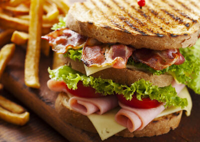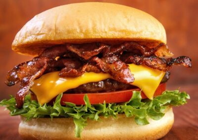 The Sedona Burger – our most popular – topped with cheese, bacon and avocado.